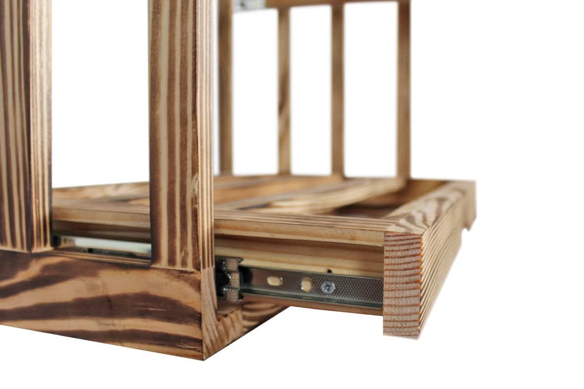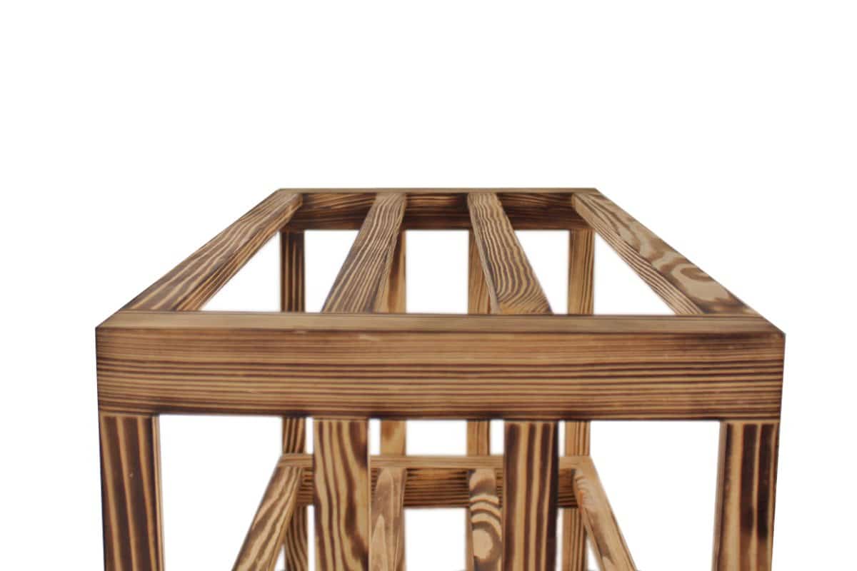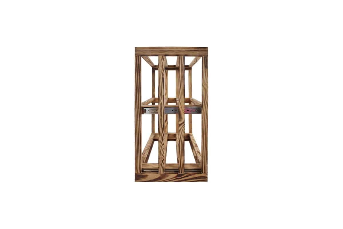 Perfektioniert bis ins Detail: Ein näherer Blick auf ein Weinablage aus Geflammtes Kiefer