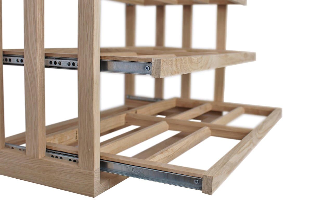 Perfektioniert bis ins Detail: Ein näherer Blick auf ein Weinablage aus Eiche