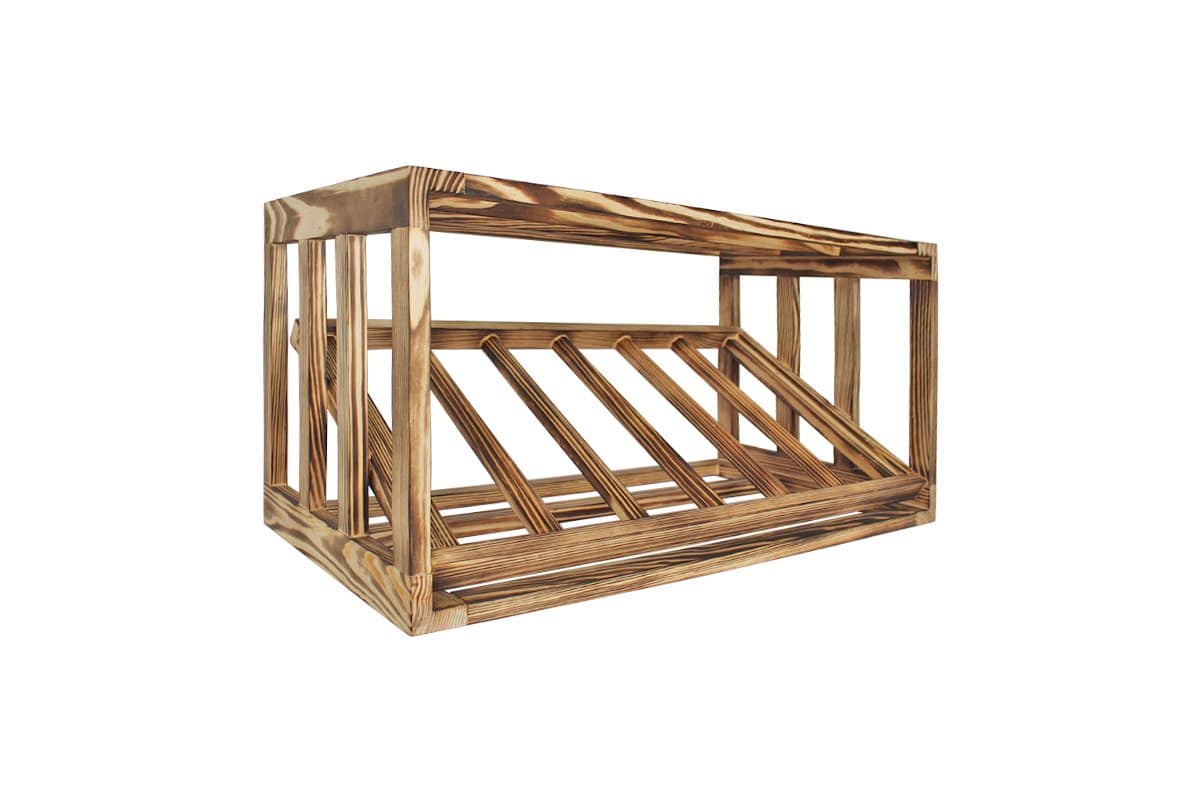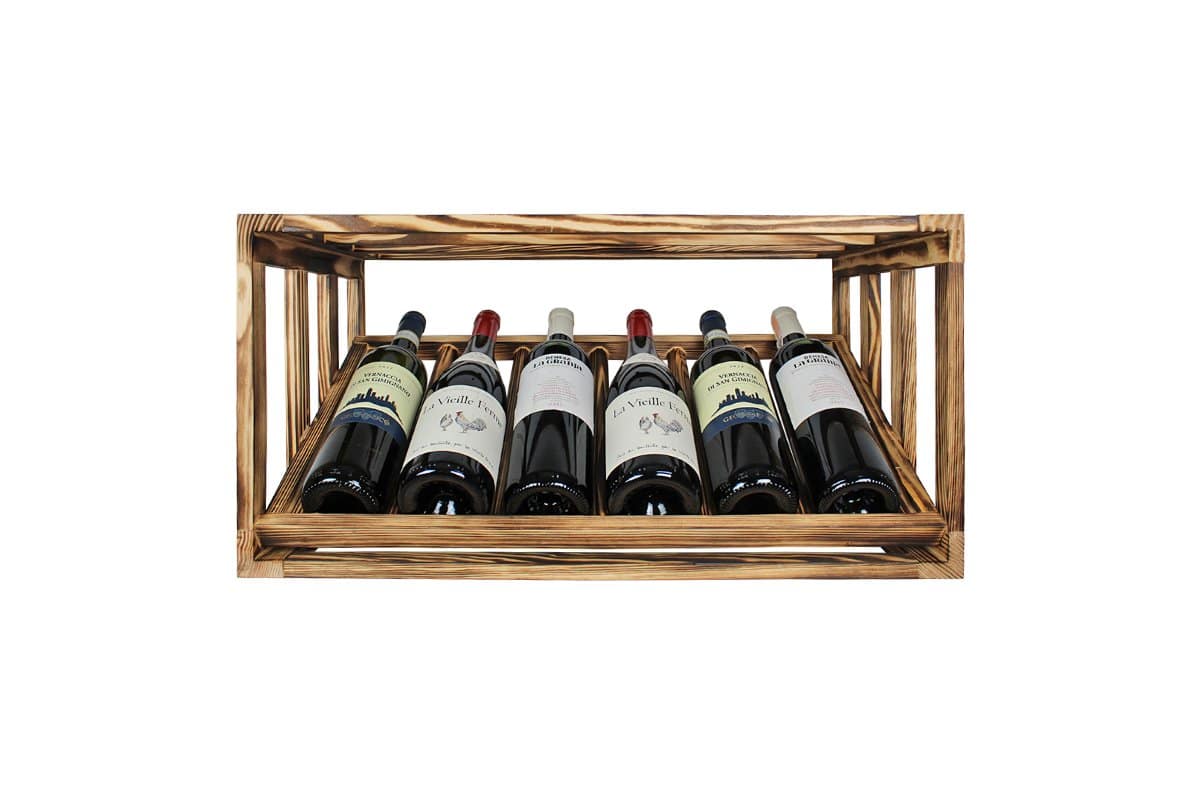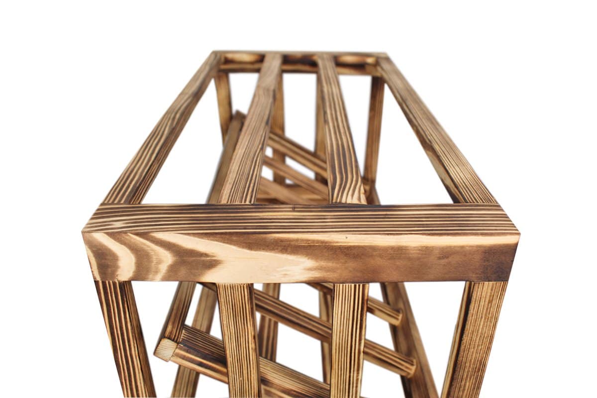Perfektioniert bis ins Detail: Ein näherer Blick auf ein Weinhalter aus Geflammtes Kiefer