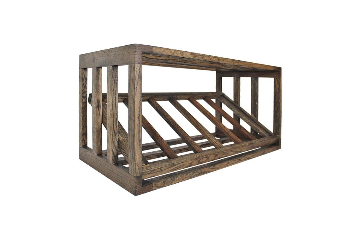 Perfektioniert bis ins Detail: Ein näherer Blick auf ein Weinhalter aus Geräuchert Eiche