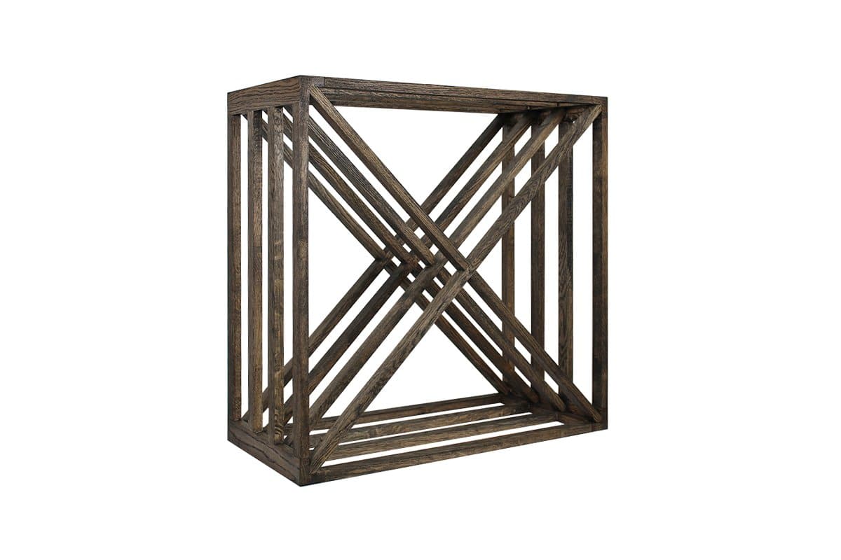 Perfektioniert bis ins Detail: Ein näherer Blick auf ein Weinregal aus Geräuchert Eiche