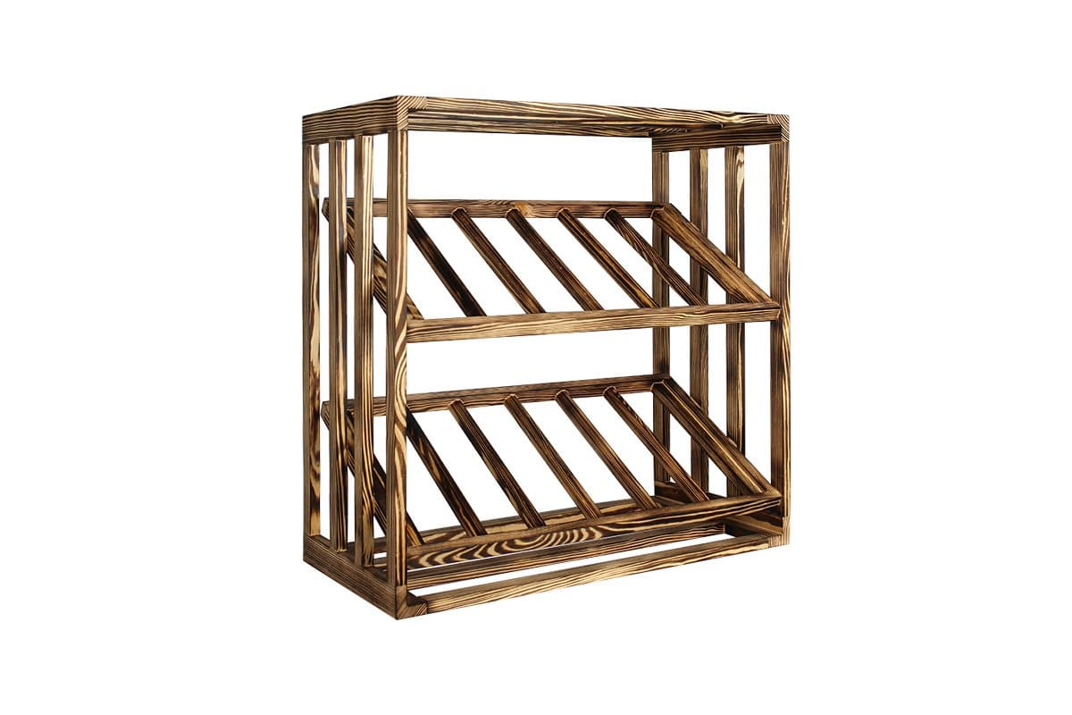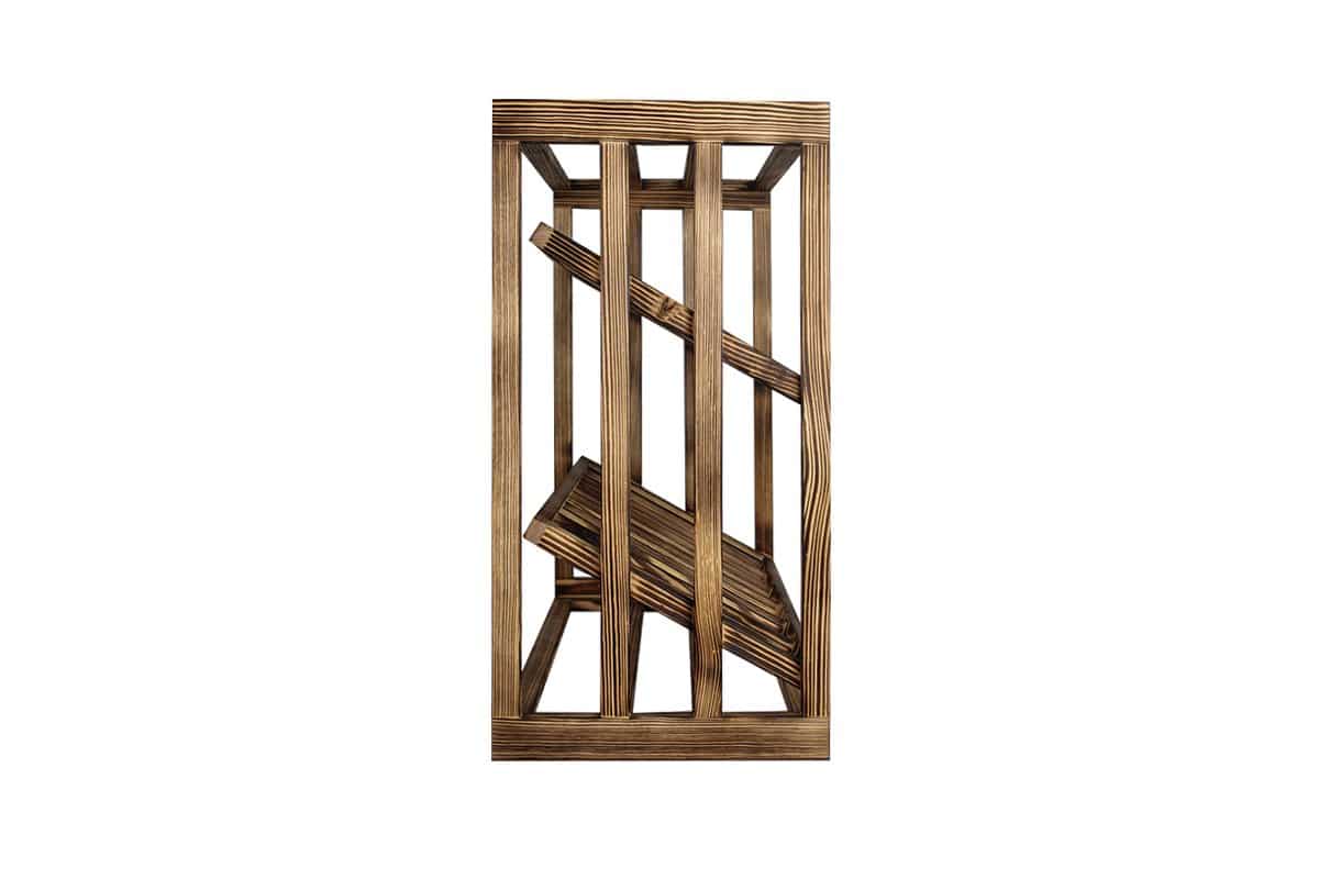 Perfektioniert bis ins Detail: Ein näherer Blick auf ein Weinregal aus Geflammtes Kiefer