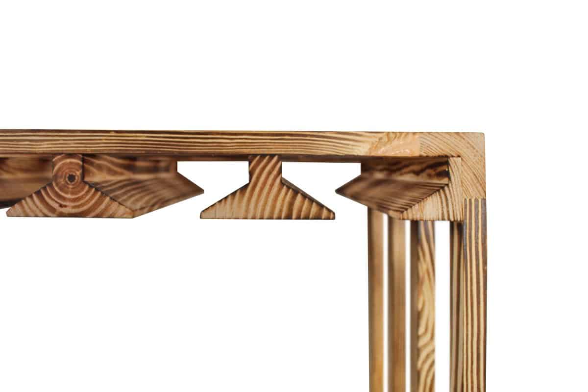 Perfektioniert bis ins Detail: Ein näherer Blick auf ein Weinregal aus Geflammtes Kiefer
